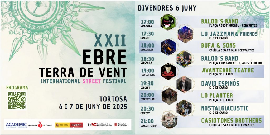 El proper divendres 6 de juny, Lo Planter participarem en la 22a edició del Festival Internacional de carrer i multidisciplinari ‘Ebre Terra de Vent’, que ofereix música de vent en directe, de gran qualitat i amb companyies d’arreu del món, pels carrers i places del municipi.