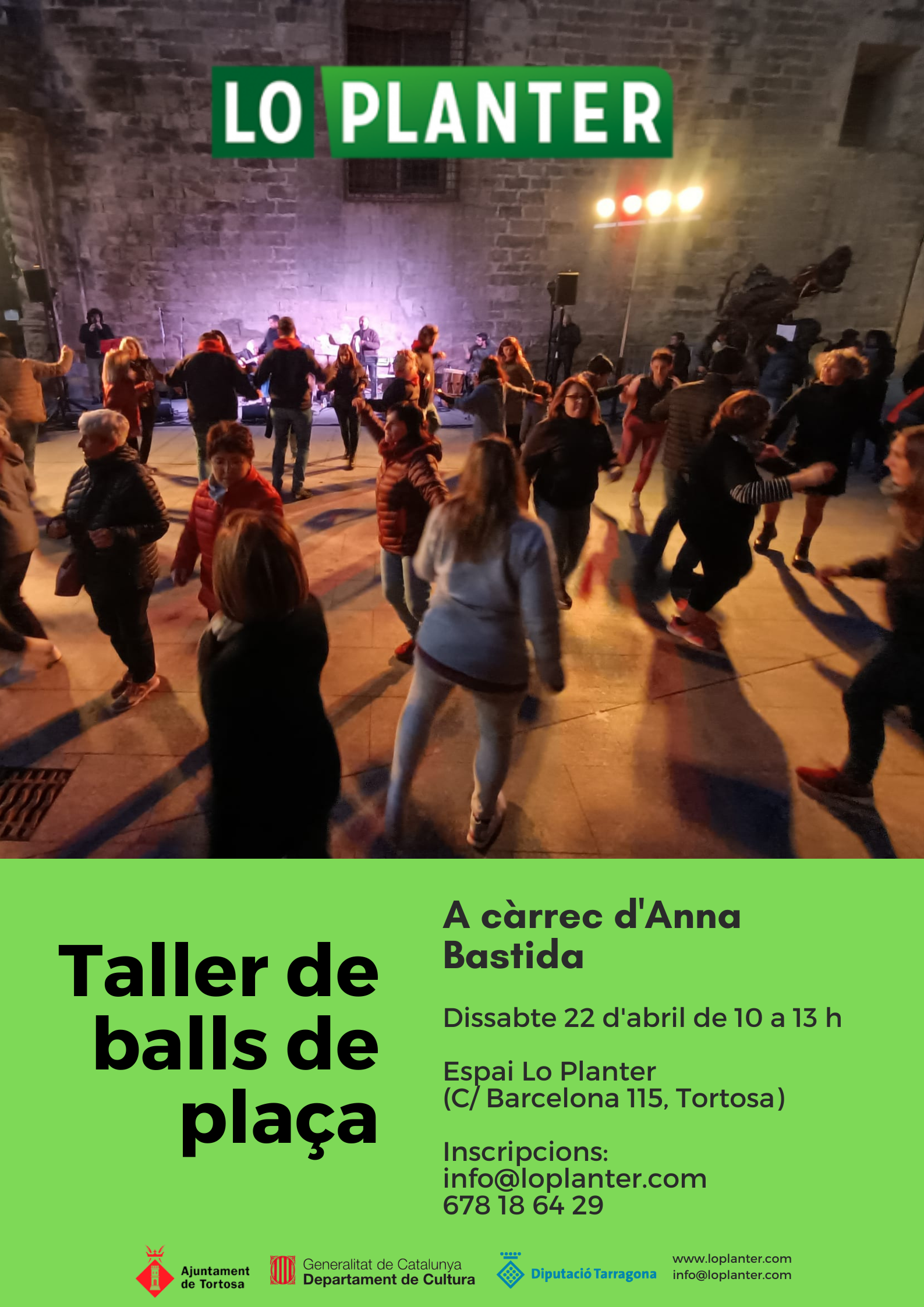 [themify_hr color=”light-grey”] El dissabte 22 d’abril de 10 a 13 h Anna Bastida oferirà el taller de balls populars de plaça. Dia: Dissabte, 22 d’abril Horari: 10.00h – 13.00h Lloc: Espai Lo Planter (Carrer Barcelona 115, 43500 Tortosa)… 22 abril – Taller de balls de plaça